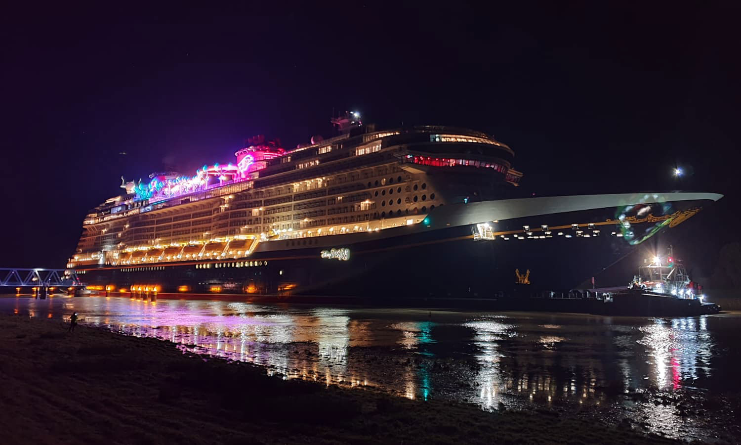 Das nächste Kreuzfahrtschiff machte sich auf der Meyer Werft in Papenburg bereit für die spektakuläre Fahrt in Richtung Nordsee. Die Überführung der Disney Destiny von Papenburg über die Ems in Richtung Eemshaven begann in der Nacht vom 19. auf den 20. September 2025 und verlief planmäßig.